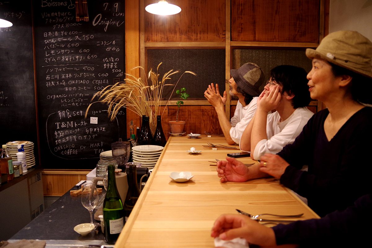 四月に佐渡島へ取材にいったとき、佐渡南部のカーフェリーが発着する小木という港町で友人と夕飯を食べていて、「玉置さんに会わせたい人がいるんだよ。もうすぐこの小木にオープンする店があって、そこのシェフが……」という話を聞いていた時に、ガラガラ~と扉を開けて入ってきたのが、まさにその人だった。